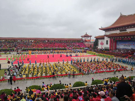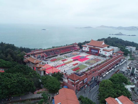 紀念大會后,還舉行了己亥年春祭媽祖典禮等活動。來自臺灣云林北港朝天宮、高雄路竹天后宮等40家臺灣宮廟代表和香港、澳門地區媽祖信眾,以及阿根廷、泰國、越南、老撾、馬來西亞等國家的媽祖信眾代表近萬人歡聚圣地,同沐福澤,共慶圣誕。930分,農歷己亥年春祭媽祖典禮開始,可納2萬人的湄洲島天后宮廣場座無虛席,禮臺中央,媽祖金身端莊肅穆,三獻樂舞畢,825米長的彩色巨幅綢帶象征各國民心匯聚的“海上絲綢之路”,涌向媽祖金身,寓意海洋文化與媽祖文化完美融合。旌鼓禮炮聲中,海內外信眾依古制三跪九叩,同謁媽祖,祈愿兩岸和平,民族昌盛,絲路復興。為期六天的紀念媽祖誕辰活動期間,來自各地的120支民俗表演隊4500多人輪番上陣,為海內外媽祖信眾、游客獻上一場精彩紛呈的文化盛宴。