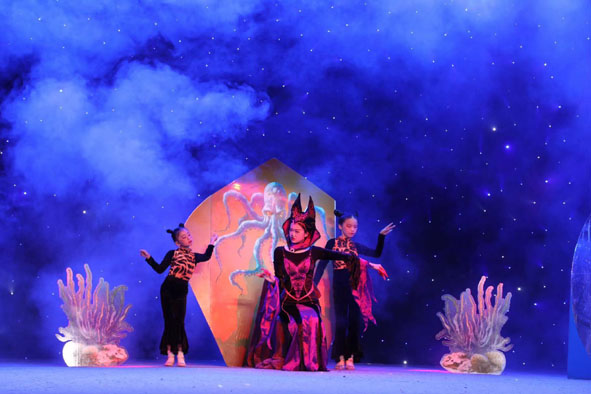此次“墨•彩”文化藝術節隆重推出的平潭首部戲劇——大型兒童劇《深海美人魚》,是由平潭綜合實驗區海峽文化藝術交流中心出品?!渡詈C廊唆~》改編自安徒生童話故事《海的女兒》,海峽文化藝術交流中心主任黃麗曦兼任總導演,在劇目創排過程中加入平潭文化旅游的特色元素,完美融合,打造屬于平潭自己文旅特色和藝術精品。中心還邀請了在嵐臺灣籍演員孫顯同加入《深海美人魚》的創排工作,從臺灣學成歸來的海峽文化藝術交流中心副主任朱佐先生負責此次活動兩岸文化藝術交流內容的策劃和執行。