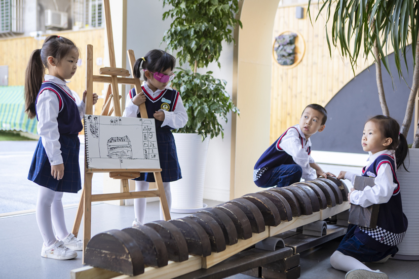 幼兒園在戶內外空間的建設、生活環境的創設、游戲材料的豐富等都以幼兒需要和興趣為導向,以幼兒發展為根本。在這個“樂園”里,師幼一起探索著身心快樂的要義,幼兒學會快樂生活、樂享游戲、樂于學習,獲得寶貴的成長經歷。而教師們愿意做“樂園”里的耕耘者,用心陪伴和用愛守護的支持者。順應兒童興趣需求,創設了探究的游戲環境,幼兒可以從室內玩到戶外,從地面玩到平頂;戶外有各類果樹、茶樹、花卉、蔬菜;有山坡隧道、戰壕堡壘、沙水管道、小橋坡道,這樣巧奪天工的天然設計,讓幼兒感覺到自然天成和身臨其境的情境教育;順應發展需求,創設可學習的游戲環境,有娃娃家、種植區、探究區、藝術區等,孩子們在草地里搭帳篷,石頭當鍋樹葉抵菜、拿著顯微鏡觀察茶葉的葉脈,在水池里用不同工具打撈泥鰍,在涂鴉墻上盡情潑墨,孩子們在原汁原味、不事雕飾的游戲中,盡顯野趣;順應個性化需求,創設可嘗試的游戲環境,建盞館里有孩子、家長和老師三方協力制作的非遺“建盞”,木工坊里,有孩子們稚嫩的小手制作了各具特色的木工作品,在操作中啟發心智、收獲有益經驗。