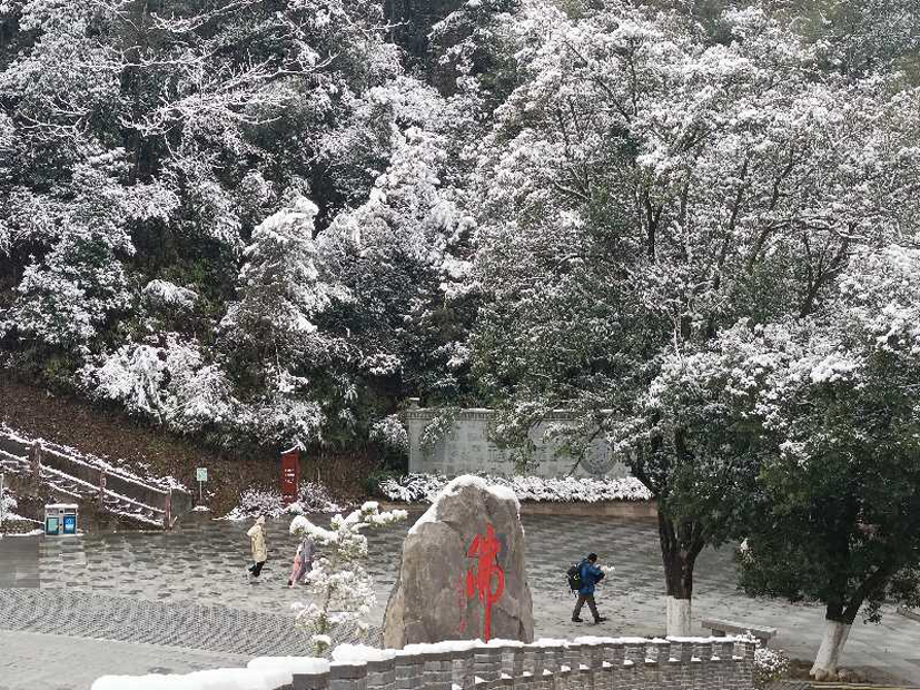 人景相依,情景交融,南方的雪有更多色彩的表現空間。“插花臨水一奇峰,玉骨冰肌處女容。” 大雪將玉女峰裝點成了一個如詩如畫的童話中的冰雪世界。此時的玉女峰,“一身白潔”,仿佛披上了一層潔白的外衣,在陽光的照射下,晶瑩剔透的霜花閃爍著迷人的光澤。雪具有高潔的品格,是純潔的象征,可以滌蕩一切的污濁,同時也承載著堅強的不懼易化的內核。“莫道皎晈易污,她能將濁消塵絕,放晴日融化,亦以清泉流去也。”寥寥幾句,作者就把雪的潔白素雅、清新別致,以及純潔、廉潔的品性表達的淋漓盡致,可謂神來之筆。