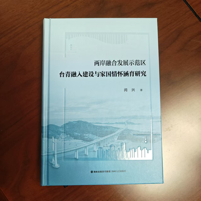 由全國臺灣研究會會長汪毅夫做序,中共福建省委黨校、福建行政學院閩臺研究院副院長、福建省人民政協理論研究會特約研究員閆興教授撰寫的《兩岸融合發展示范區臺青融入建設與家國情懷涵育研究》專著,研究角度獨特,切入點精準,內容圍繞兩岸青年交流、融合的實際問題展開,重點研究臺青在祖國大陸融合建設中的家國情懷涵育。既具有很高的學術價值,又緊扣時代脈搏,具有很重要的現實意義。