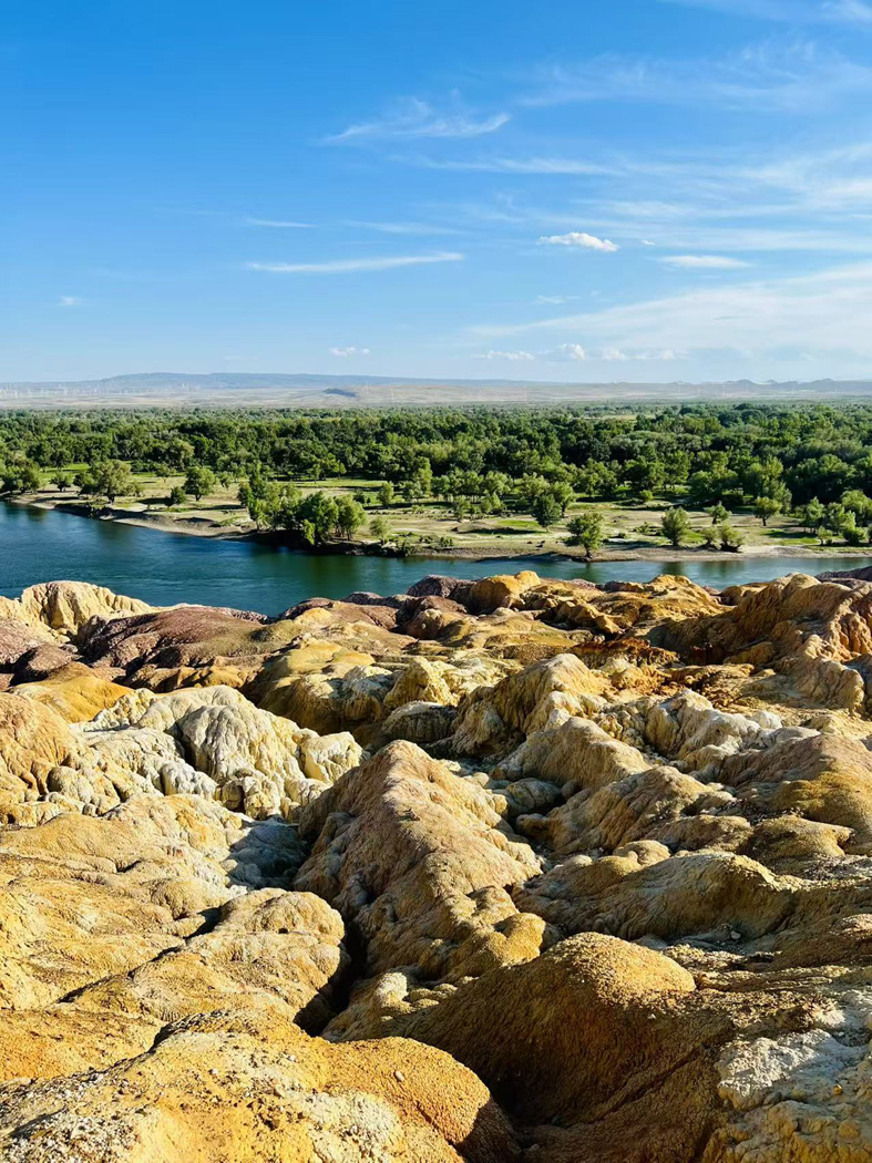 說著,老馬帶我走到一片低洼處,那里橫臥著幾棵倒下的胡楊樹。即便已經臥地不起,它們的軀干依舊堅硬如石,斷裂的枝干露出深褐色的肌理,仿佛還在與風沙對峙。“你別瞧它們倒了,用處可不小。”老馬蹲下身,輕撫著胡楊樹的軀干。“這些倒木能擋住流動的沙丘,保護周圍的幼苗生長;質地堅硬、耐腐不朽的木材,可以用來做農具、搭圍欄;就算深埋沙丘,也會慢慢分解,滋養土壤。它們倒下了,也在為百姓謀利,這就是胡楊樹的不朽之美,就算落幕,也帶著榮光。”