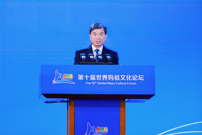 周祖翼表示,媽祖文化以“立德、行善、大愛”的精神感召世人,成為中華優秀傳統文化和世界海洋文明的重要組成部分。世界媽祖文化論壇的連續成功舉辦,有力推動弘揚媽祖文化、促進文明交流互鑒。福建將深入學習貫徹習近平文化思想,學習貫徹中共二十屆四中全會精神,持續提升文化影響力、展示福建新形象。要進一步加強媽祖文化的保護傳承和研究闡釋,發揮媽祖文化的精神紐帶作用,廣泛凝聚僑心僑智僑力,促進兩岸同胞心靈契合。要進一步開展形式多樣的國際傳播與交流活動,向世界生動講述媽祖故事、中國故事,助力構建人類命運共同體。